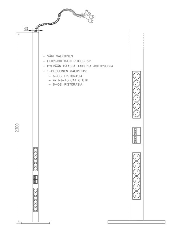 Asennus-/pistorasiapylvään väri - valkoinen