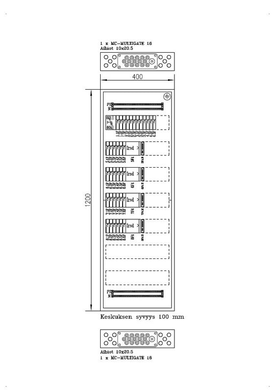 Pääkytkin etukojeena, jako 1x/2x VVSK + suojaamattomat lähdöt: