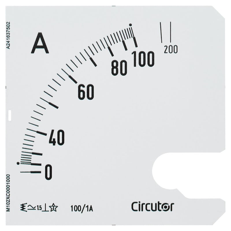 Asteikko SEC96 100/5 A asteikko 90º, P2 mittarille EC96 M10230 Asteikko SEC96 100/5A asteikko 90º, P2 mittarille EC96 M10230