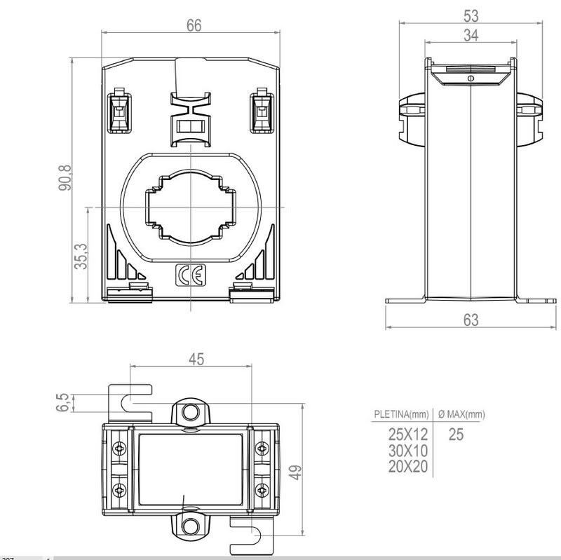 UTU POWEL - Virtamuuntaja kiinteä - TD6.2 D25 200/5A 3,5VA lk0,5