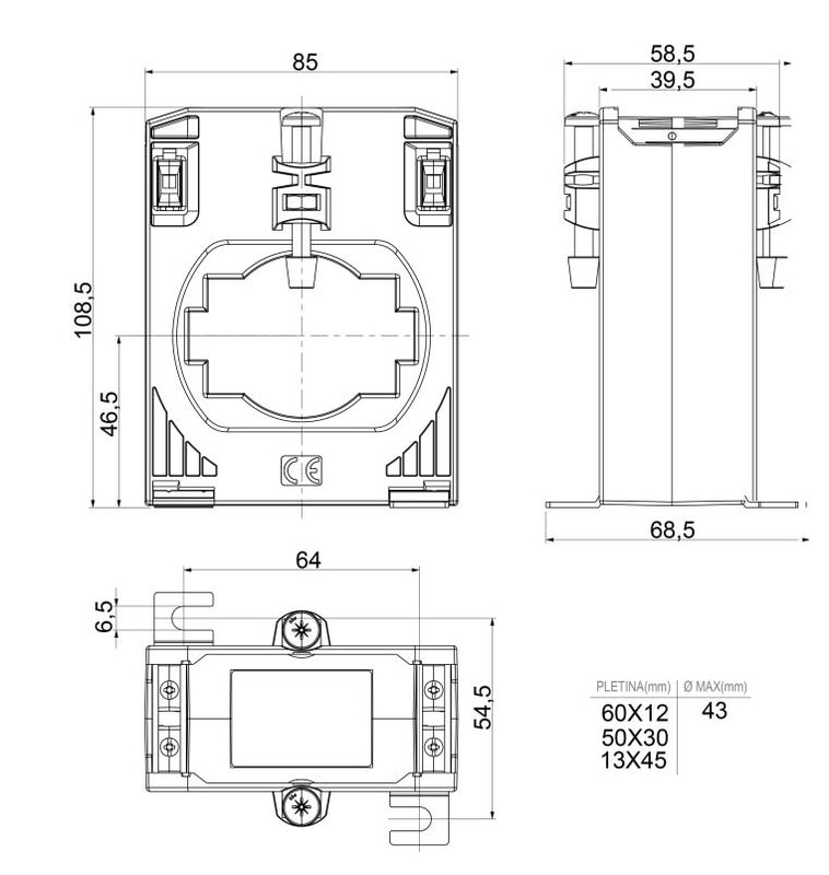 UTU POWEL - Virtamuuntaja kiinteä - TDH8 D43 600/5A 2VA lk0,2s