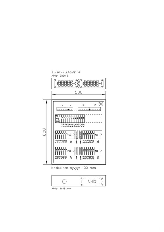 Pääkytkin etukojeena, jako 1x/2x VVSK + suojaamattomat lähdöt: