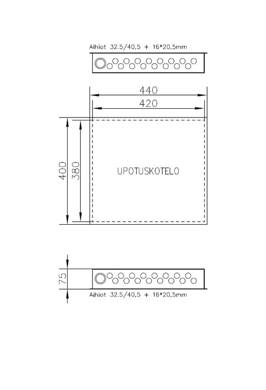 Upotuskaukalo. Kuumasinkittyä terästä. Sopii keskukseen 3332213. Upotuskaukalo. Kuumasinkittyä terästä. Sopii keskukseen 3332213. Upotusaukko 440x400x75 mm.