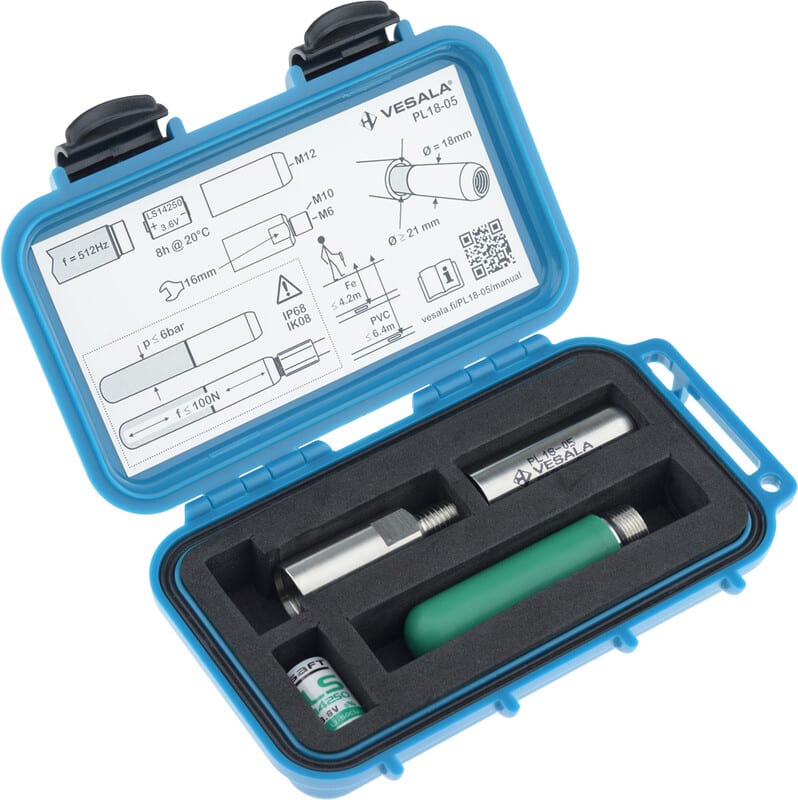 Peruskokoonpano sisältää PL18-05 lähettimen, M12-sisäkierteillä sekä M10-ulkokierteellä ja M6-sisäkierteellä varustetut paristotilat (yhteispituus 85mm), 3,6V litiumpariston, muovisen säilytysrasian (160 x 95 x 30mm) ja pikakäyttöohjeen.