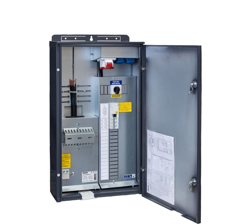 - Keskuksen pistorasiat: 2kpl suko ja 1kpl 3-vaihe 400V 16A