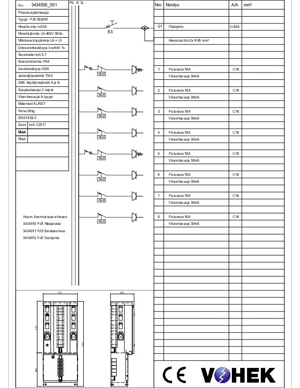 VOHEK - Pistorasiajakokaappi - PJX 0026W 63A IP44 FE/AL
