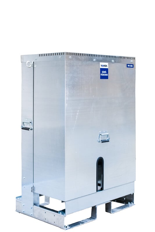 Ylöspäin avautuva suojaovi lukittavissa riippulukolla.