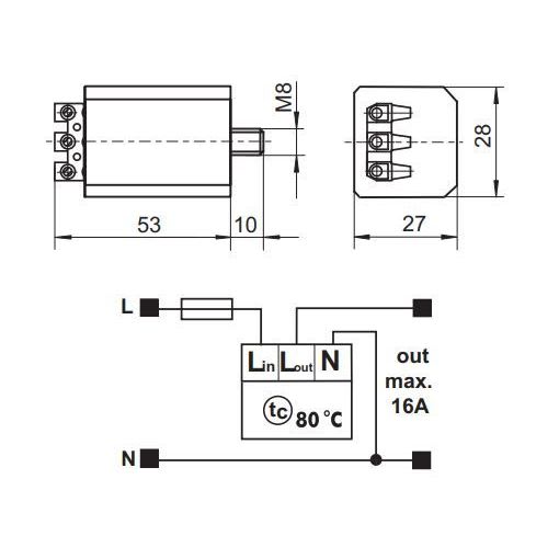Max 16A, 10kV, Suojaluokan II valaisimille