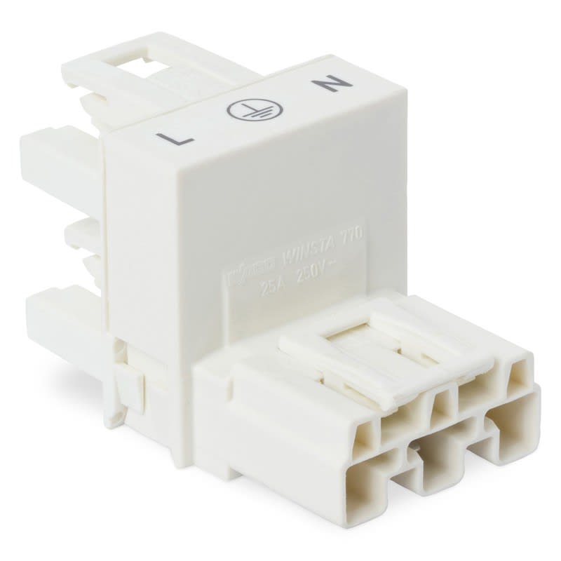 3-napainen h-haara jakeluliitin varustettu kolmella lukolla. Uros /Naara - NAARAS WINSTA-pistoliitosjärjestelmä koostuu pistoliittimistä, haaroittimista, johtosarjoista ja kytkentäkoteloista. Näillä tuotteilla voidaan asentaa helposti ja nopeasti kokonaisia sähkönsyötön- ja valaistuksenohjauksen ratkaisuja. WINSTA-johtosarjat ovat koneellisesti valmistettuja ja jousitekniikalla toimivat liittimet tekevät ratkaisuista huoltovapaan koko elinkaaren ajan. Lukkojärjestelmän ansiosta asennus on kiinteä ja luotettava. Kun WINSTA-pistoliitosjärjestelmä on valmiiksi asennettu, voidaan asennus tarkastusmitata kätevästi testiaukoista.
