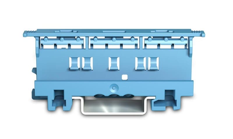 Soveltuu tuotteille: 221-412, 221-413, 221-415, Snrot 1922102, 03, 05,DIN-35-kisko kiinnityadapteri 221-sarjalle, Sininen, käyttämällä tätä kiinnikettä saat asennuksesta kiinteän ja hyväksytyn