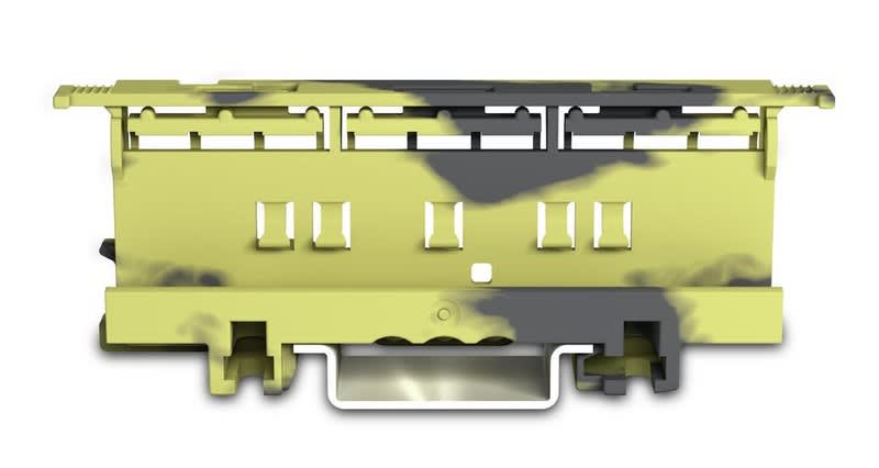 Soveltuu tuotteille: 221-612, 221-613, 221-615, Snrot 1975262, 63, 65,DIN-35-kisko kiinnityadapteri 221-sarjalle, Tummanharmaa-Keltainen, käyttämällä tätä kiinnikettä saat asennuksesta kiinteän jahyväksytyn