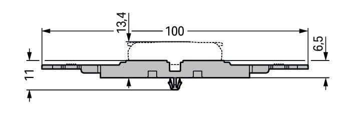 WAGO 221-Inline kiinnitysalustan avulla - Saat asennuksesta kiinteän ja hyväksytyn. Kiinnitysalustoja on 1x, 2x, 3x, 4x, 5x, kiinnitys SNAP-in kiinnityksellä, Tässä mallissa paikka vedonpoistolle nippusiteellä.