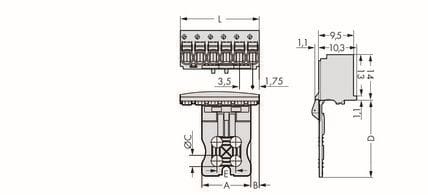 Naarasliitin sis. Otelevy. kaapelinipputoiminto ja avausapuvälinen. 4-nap. rasteriväli 3.5 mm/0.138. vaaleanharmaa