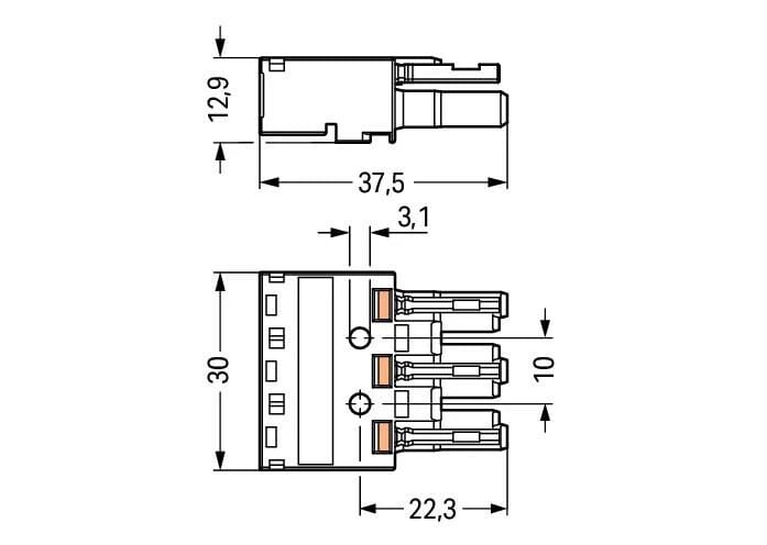 WAGO - Pistoliitin WINSTA MIDI - 3-Nap naarasliitin,Ruskea 100kpl