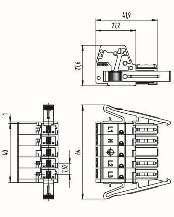 5-nap naarasliitin. sis vedonpoistokotelo. koodaus A. 1-johdinliitintä 6 mm2