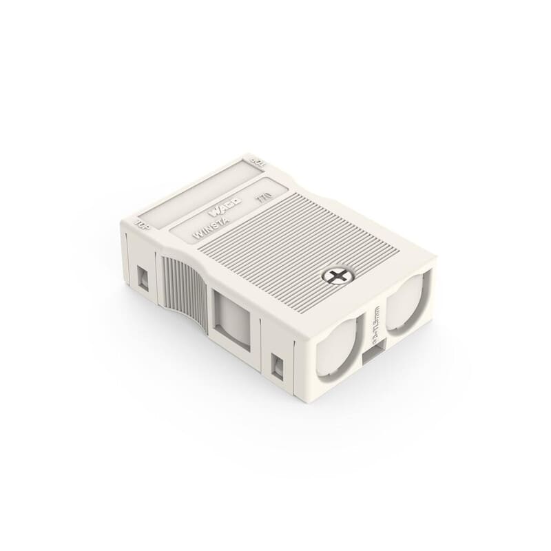 Vedonpoistaja kahdelle kaapelille 8-11,5 mm WINSTA-pistoliitosjärjestelmä koostuu pistoliittimistä, haaroittimista, johtosarjoista ja kytkentäkoteloista. Näillä tuotteilla voidaan asentaa helposti ja nopeasti kokonaisia sähkönsyötön- ja valaistuksenohjauksen ratkaisuja. WINSTA-johtosarjat ovat koneellisesti valmistettuja ja jousitekniikalla toimivat liittimet tekevät ratkaisuista huoltovapaan koko elinkaaren ajan. Lukkojärjestelmän ansiosta asennus on kiinteä ja luotettava. Kun WINSTA-pistoliitosjärjestelmä on valmiiksi asennettu, voidaan asennus tarkastusmitata kätevästi testiaukoista.