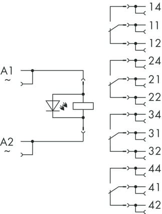 WAGO - rele 31 mm, 4 CO 230VAC,4 x 5 - WAGO 858-508 Releyksikkö