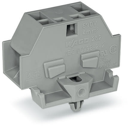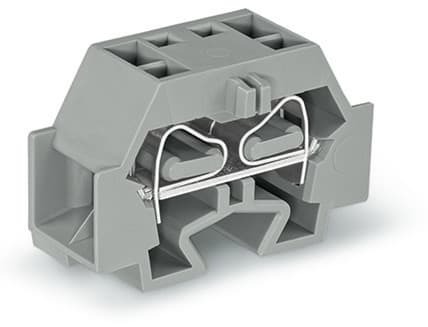 4-conductor terminal block; with snap-in mounting foot; for plate thickness 0.6 - 1.2 mm; Fixing hole 3.5 mm Ø; also fits 210-154 aluminum rail or with 209-123 mounting carrier for DIN 35 rail