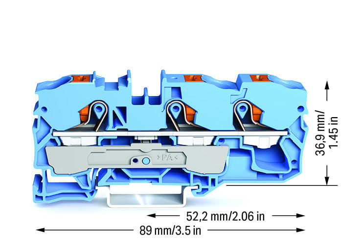 Painonapilla, Sininen, 0.5-10 mm2 pääteholkilla 16 mm2, 800 V, 57 A, liitinleveys 10 mm