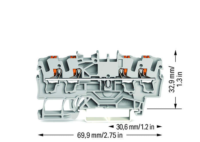 Painonapilla, Harmaa, 0.25-2.5 mm2, ilman pääteholkkia 4 mm2, 800 V, 24 A, liitinleveys 5.2 mm