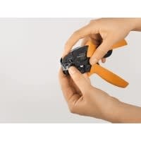 Päätehylsyjen puristustyökalu kääntyvällä ja lukittavallapuristuspäällä. Voit syöttää hylsyn ja johtimen puristusleukaan sivultatai edestä. Käytettävissä 0.14 mm2-6 mm2 eristetyillä jaeristämättömillä pääteholkeilla.Puolisuunnikkaan muotoinen puristus.