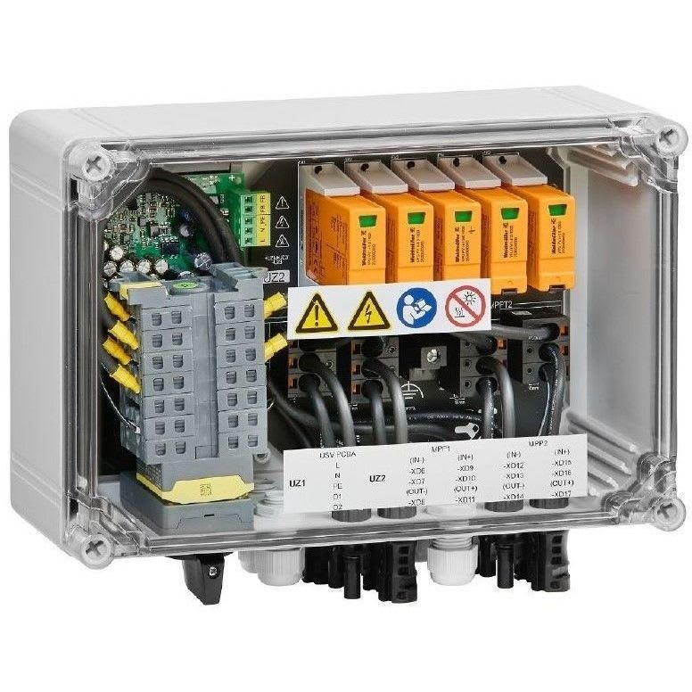 Ylijännitesuoja ja palomiehenkatkaisija, 1100 V, 2 MPPT sis.tuloa / 1ulos per MPPT, Ylijännitesuoja I ja II, etäohjaus, MC4-Evo 2 liittimillä