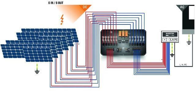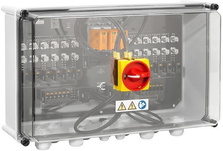 Aurinkojärjestelmän suojakotelo, 1000V, 1 MPP, 6kpl sisään/ 6 ulos perMPPT, sulake ja ylijännitesuoja 1ja 2, DC katkaisu