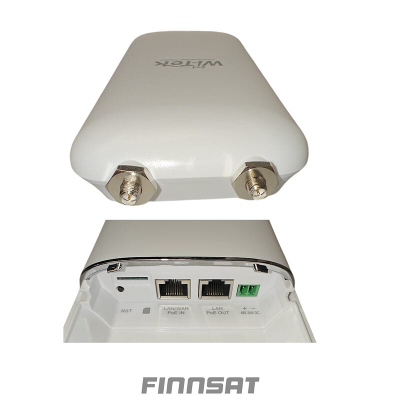 Reititin on suunniteltu ulkoasennuksiin ja paikkoihin, joissa on heikko 3G/4G-kuuluvuus. Laitteen omat antennit vahvistavat vastaanottoa 5 dBi:n verran. Jos tarvetta on lisävahvistukselle, omat antennit voidaan korvata lisäantennilla. WI-LTE117-O-V2 on suoraan yhteensopiva esimerkiksi Finnsat FS1500 MIMO-antennin kanssa. Lisäantenni liittämiseen tarvitset 2kpl SS-01RP 7557071 SMA-naaras/SMA RP-uros adapterit.