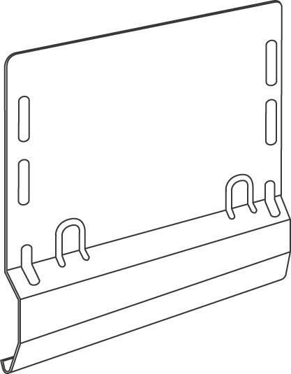 Rei'ittämätön asennuslevy asennetaan hyllyn reunaan ylä- tai alasuuntaan. Lukittuu ns. lukituskielekkeillä. Asennuslevyyn voidaan kiinnittää rasioita, kytkimiä, pistorasioita, valoja jne.