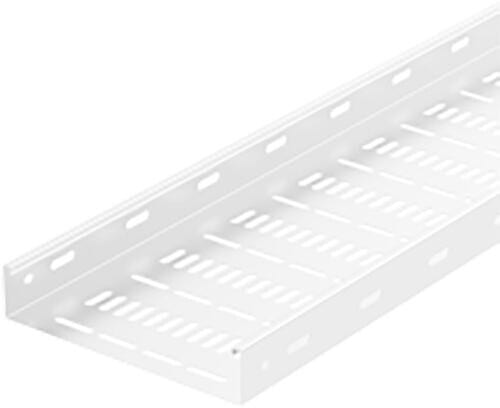 3 metriä pitkä valkoinen rei'itetty kaapelihylly sisäkäyttöön kuivissa ympäristöissä. Reunan korkeus 40 mm. Varustettu Ø 5,8 mm rei'illä jatkoja varten.