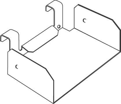 T-kappale, jolla tehdään T- ja X-liitokset. Käytetään myös sivulähtöjen kiinnityskappaleena. Helppo painettava asennus. Lukkiutuu levyhyllyyn lukitusläpän avulla.