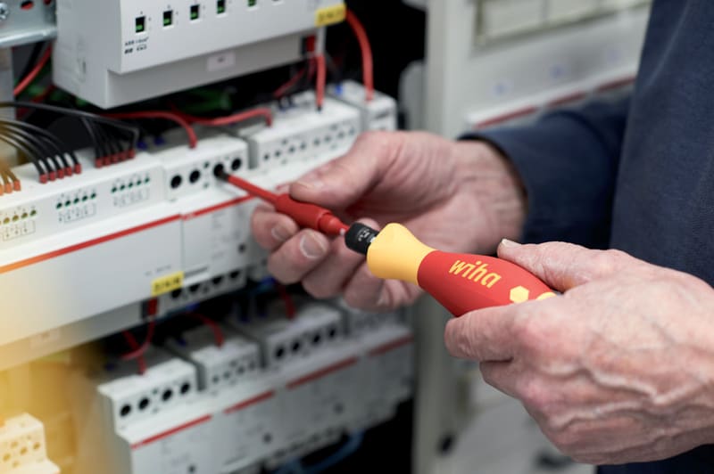 VDE-sertifioitu TorqueVario® -S VDE -momenttiruuvimeisselijärjestelmä mahdollistaa ruuvien hallitun kiristämisen taaten samalla turvallisuuden sähkötöitä tehtäessä. Työkalusarjaan sisältyy ergonomisesti muotoiltu momenttiruuvimeisselin kahva integroidulla numeroasteikolla, 15 slimBit-ohutkärkeä, kärkipidin sekä asetustyökalu. Kaikki sarjan osat on järjestetty kätevästi ja selkeästi laadukkaaseen ja kulutusta kestävään laukkuun. VDE hyväksytty momenttiruuvimeisseli kattaa säädettävän 0,8–5,0 Nm:n momenttialueensa ansiosta laajat käyttökohteet. Kun vääntömomentti saavutetaan, laite antaa selvästi kuuluvan ja tuntuvan signaalin, mikä takaa prosessivarman kiristyksen. Näin vältytään materiaalin vaurioitumiselta ja jälkitöiltä. Vääntömomenttityökalun laukaisutarkkuus on +/- 6 %, mikä täyttää standardin DIN EN ISO 6789 vaatimukset. Eristetty ClicFix-kärkipitimen mekaaninen lukitus takaa 75 mm:n pituisten slimBit-ohutkärkien varman pidon. Sekä momenttiruuvimeisselille että slimBit-ohutkärjille suoritetaan kansainvälisen standardin IEC 60900 mukainen kappaletarkastus, ja ne mahdollistavat turvallisen työskentelyn jännitteisten osien parissa 1 000 V AC saakka.