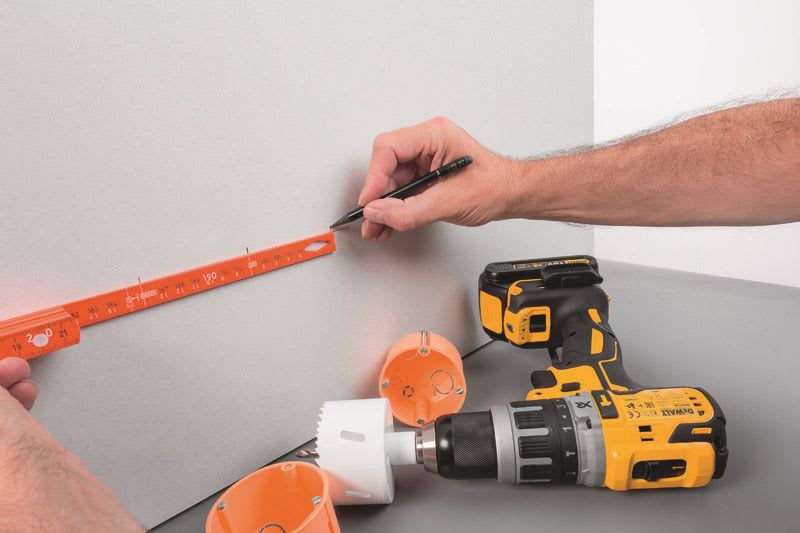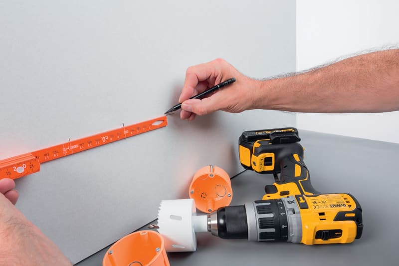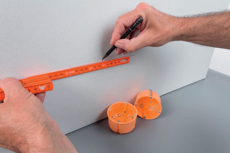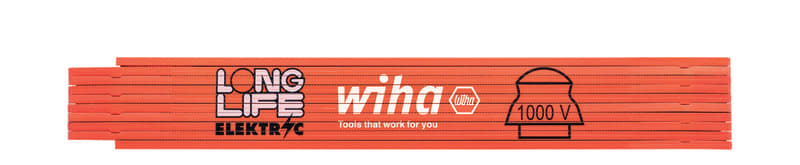 Wiha sähköasentajan taittomitta. Wiha sähkömiehen taittomitta mittaamiseen ja sähkörasioiden etäisyyksien merkkaamisen. Voidaan käyttää myös vetoapuna lyhyillä, ahtailla etäisyyksillä. Mittaan on merkitty kolmen sähkörasian välimatkat – 71 mm:n välein. Kiinnitysaukko 3–7 mm:n kaapeleille. Loistevärjätty mitta löytyy helposti myös pimeässä – varsinkin UV-valon avulla.
