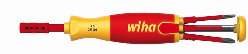 LiftUp electric -makasiinilla varustettu ruuvimeisseli on ihanteellinen työkalu liikkuvaan käyttöön, jokaiselle sähköasentajalle. Kahvan makasiinissa on tilaa kuudelle slimBit-ohutkärjelle, ja makasiiniosa tulee esiin molemminpuolin kahvan nappia painamalla. Kärkien vaihtaminen sujuu vaivattomasti. Lukollinen ClicFix-kärkipidike kiinnittää kärjet luotettavasti. Tämä teknologia tekee kärkimakasiinista yleiskäyttöisen ruuvimeisselin. Myös turvallisuuden suhteen makasiini-kärkipidin tarjoaa kaiken mahdollisen. Sekä Liftup-makasiini-kärkipidin että sen sisältämät slimBit-ohutkärjet on sertifioitu kansainvälisen standardin IEC 60900 mukaisesti. Kapeiden, 75 mm:n pituisten slimBit-ohutkärkien suojaeristys on integroitu kärkiin, minkä ansiosta niillä pääsee käsiksi myös syvällä oleviin ruuveihin tai jousielementteihin. Plussaa tuo myös kääntyvä kahvan nuppi, joka helpottaa ruuvaamista.