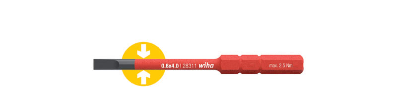 SlimBit-ohutkärjet Ø6mm on tarkoitettu käytettäväksi Wiha speedE®-, slimVario®- tai TorqueVario®-S electric -kahvoille. Eristetyissä Wiha slimBit -ohutkärjissä on slimTechnology -muotoilun ansiosta jopa 33 % kapeampi terä. Yletyt vaivattomasti myös syvemmällä oleviin ruuvi- ja jousielementteihin. Turvallista työskentelyä. Jokainen työkalu on testattu yksitellen 10 000 voltin jännitteellä ja hyväksytty 1 000 volttiin asti. Parantaa tehokkuuttasi. Monipuolinen vaihtoteräjärjestelmä säästää tilaa. Standardi. Valmistettu IEC 60900: 2012 mukaan sekä. VDE- ja GS-testattu.