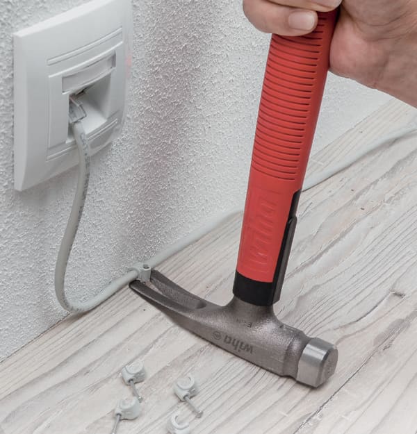 Poista kaapelikiinnikkeet ja aseta kaapelit ja tulpat vahingoittamatta herkkiä pintoja. Litteä sorkka naulojen ja kaapelikiinnikkeiden irrottamiseen. Tasapainoinen käsittely vasaran optimaalisen painonjaon ansiosta. U-muotoinen pää mahtuu paremmin ahtaisiin paikkoihin. Suojatulla, litteällä varren päällä naputtelet kaapelit ja tulpat paikoilleen niitä vahingoittamatta. Tavanomaisella vasaralla on vaikea päästä ahtaisiin kohtiin ja kulmiin, ja niistä voi jäädä rumia jälkiä ympäröiviin pintoihin. Wihan sähkövasaran U-muotoinen iskupinta mahdollistaa optimaalisen pääsyn ahtaisiin kohtiin. Vasarassa yhdistyvät lisäksi ergonomisuus, painon tasainen jakautuminen ja mahdollisuus irrottaa kiinnitysosia, kuten kaapelikiinnikkeitä. Optimaalisesti suunniteltu painon jakautuminen takaa juuri oikean tasapainon iskemistä ja vaivatonta työskentelyä varten. Vasaran pään laakeiden, suorien haarojen ansiosta kaapelikiinnikkeet saa irrotettua hankalistakin paikoista, ja naulat saa vedettyä seinästä nopeasti ja helposti. Vasaran varren laakealla päällä voidaan asentaa kaapeleita ja tulppia rikkomatta seinää. Ergonomisesti muotoillusta varresta saa hyvin otteen, ja se pysyy tukevasti kädessä iskujen aikana. Käyttö: Naulakiinnikkeiden ja naulojen irrottamiseen vaivattomasti ja kaapelien ja tulppien paikalleenpanemiseen. Ihanteellinen ahtaisiin työtiloihin.