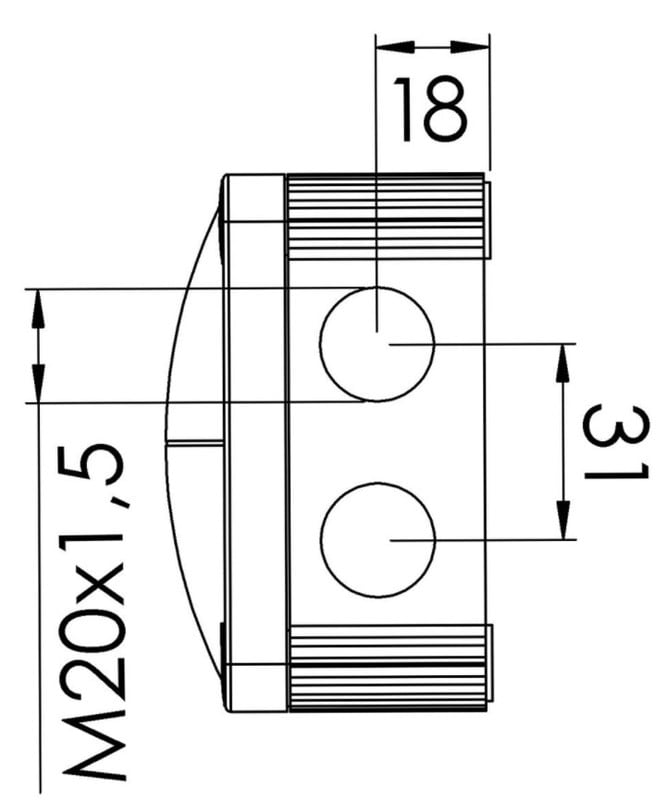 Lähtevät liitännät, joissa on liittimet rakennuksen pistorasia-asennusta varten:
