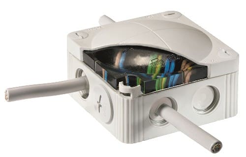 Lähtevät liitännät, joissa on liittimet rakennuksen pistorasia-asennusta varten: