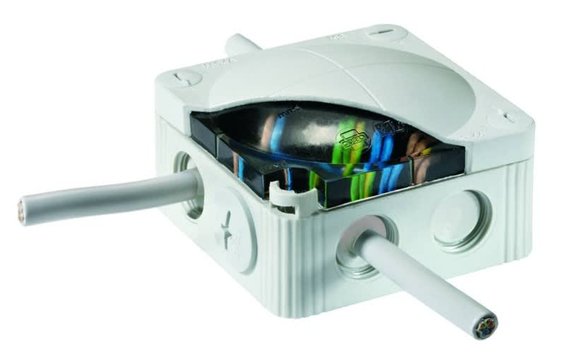 Lähtevät liitännät, joissa on liittimet rakennuksen pistorasia-asennusta varten:
