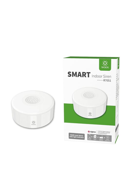 WOOX R7051 älykäs sireeni antaa sinulle hälytyksen, kun turvajärjestelmässäsi on jotain vialla. Yhdistä R7051 sireeni muihin WOOX turvalaitteisiin niin se antaa tarvittaessa hälytysäänen. Liike, savu, vesivuoto, huono ilmanlaatu, liian korkea lämpötila, SOS-painiketta painettu tai ovi avataan ilman lupaa? Kaikki nämä asiat ja paljon muuta voidaan asettaa hälytysäänen laukaisijaksi. Sireenin käyttöä varten tarvitset myös R7070 Zigbee-ohjainyksikön.