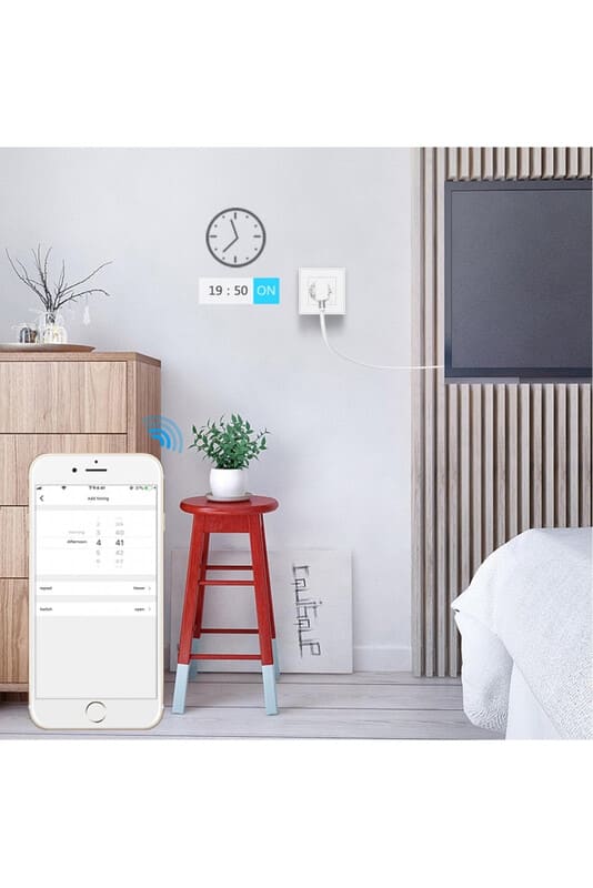 Automaattinen virrankatkaisu: Jäikö sähkölaitteet kotona päälle? Älä anna asian enää häiritä. Virran katkaisu voidaan ajastaa. Voit myös kytkeä virran päälle tai pois milloin tahansa matkapuhelimesi APP:in kautta.
