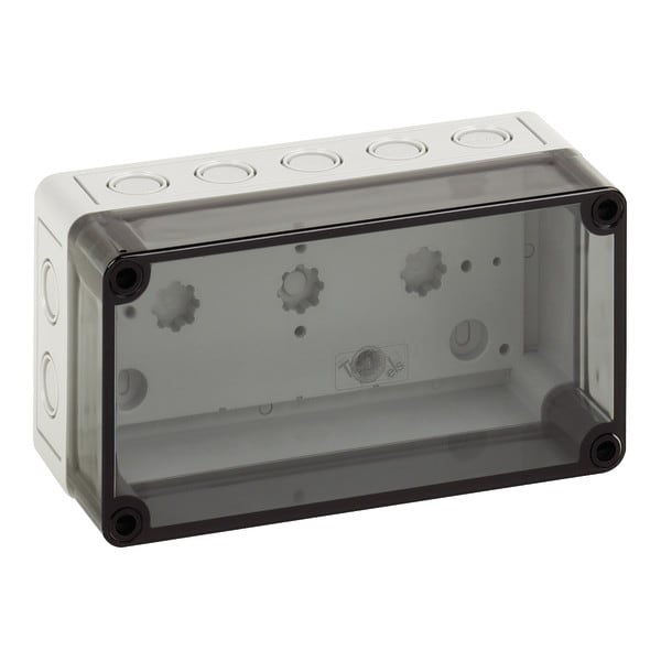 Tyhjä kotelo IP66, kotelo: polystyreeni, harmaa, vastaava kuin RAL 7035, kansi: polykarbonaattia, läpinäkyvä