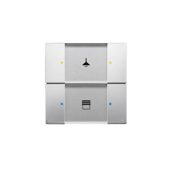 2/4-osainen painike, joka lähettää sähkeen väylälle, LED-idikointi. Asennetaan KNX-väyläliityntäyksikköön 6120/12/4-101 tai 6120/13. Peitelevy ei sisälly toimitukseen.