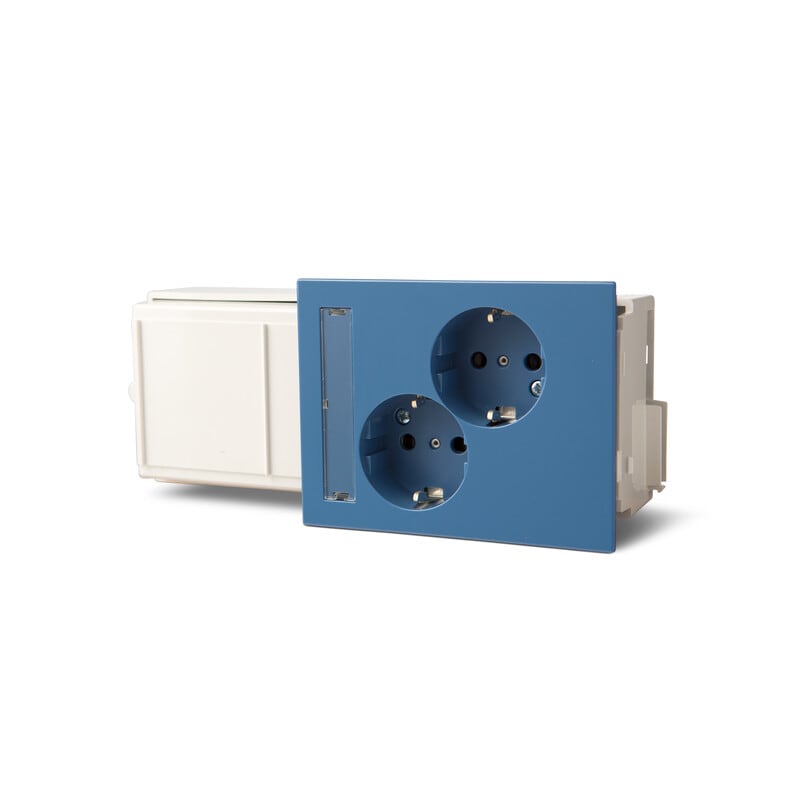 Asennusvalmis 2-osainen pistorasia merkintäikkunalla. Kytkentärasia vedonpoistolla ja kolmella pikaliittimellä. Hyväksytty 3-vaiheiseen läpijohdotukseen.