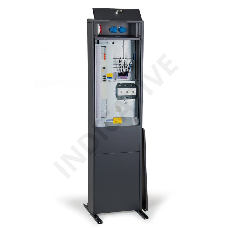 Moderni 2-tariffimittauskeskus yhdellä mittariristikolla, vikavirtasuojakytkimellä, kuudella johdonsuojakatkaisijalla ja T2-luokan ylijännitesuojilla. Mittaus ennen pääkytkintä. Keskuksessa on erillinen tila pistorasioille, jossa 2 kpl 1-vaiheisia ja 1 kpl 3-vaiheisia 16A pistorasioita, jotka on suojattu 30mA vikavirtasuojakytkimellä. Keskuksen mukana toimitetaan myös 25A päävarokkeet, pohjakoskettimet sekä vaihtokannet. Keskuksessa on kiinteä jalusta. Keskuksen väri RAL7024. 50A.